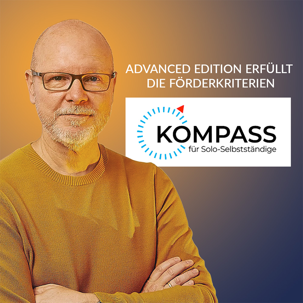 Die Variante B (Advanced-Edition) erfüllt die Kriterien für eine KOMPASS-Förderung für Solo-Selbstständige in Deutschland!